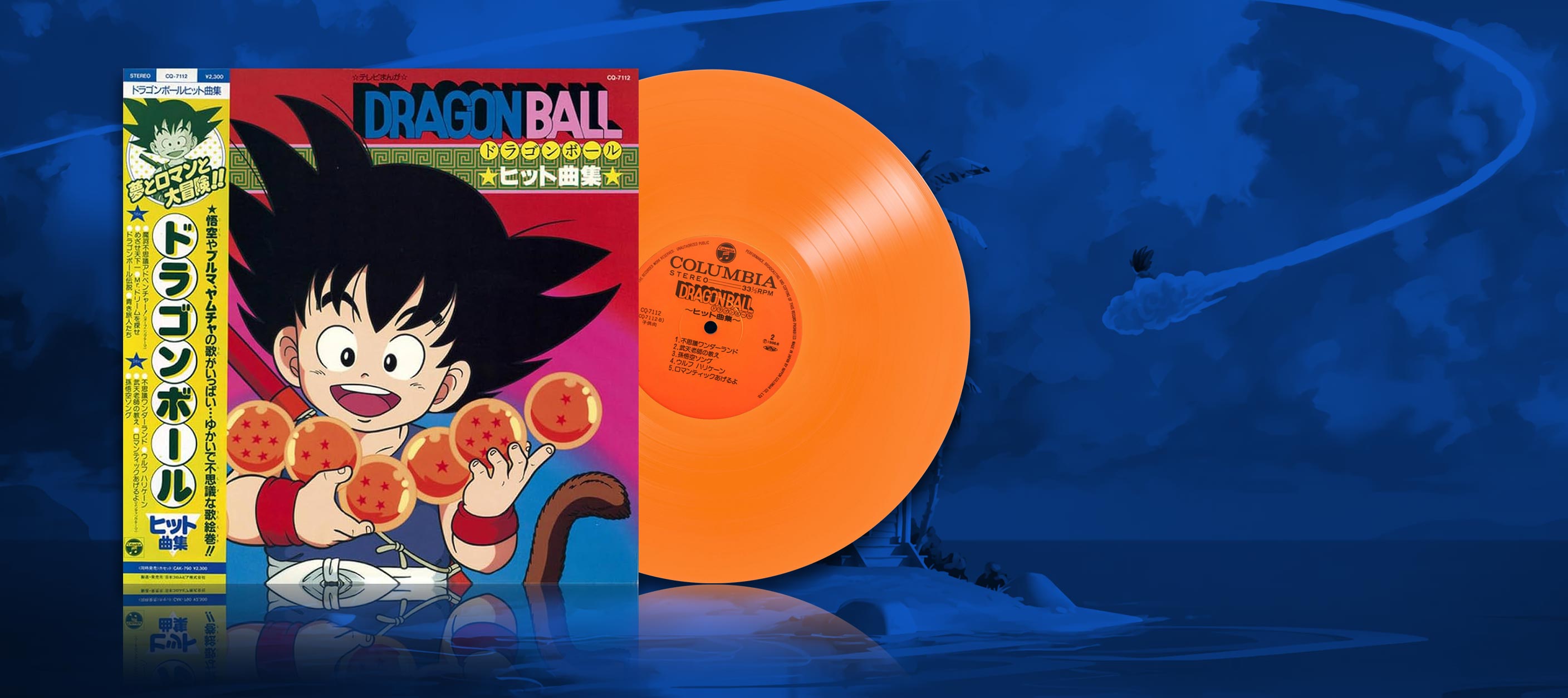 El vinilo Dragon Ball Hit Song Collection contiene música del anime, prensada en vinilo naranja transparente y alojada en una funda.